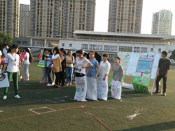 一排嘴里衔着纸杯的女生,在快速地传着水,第一人由于没调整好姿势,大部分的水洒在第二个女生的脸上,但她们丝毫没停下比赛的脚步,继续一杯一杯地传着。最后她们成功了,六个人激动地一起跳了起来,欢呼着……4月2号下午, 由化生自律会举办的宿舍文化艺术节的第一环节—--默契大考验在操场拉开帷幕。此次活动是由“杯水传情”、“袋鼠跳”、“撕名牌”、“保护舍长”和“舞动呼啦圈”五个游戏组成。