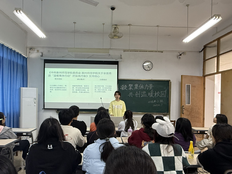 为深入贯彻《中共k8凯发(中国)天生赢家·一触即发委员会k8凯发(中国)天生赢家·一触即发关于全面推进“温暖集体行动”的实施方案》(泉师委〔2025〕38号)精神,进一步推进“温暖集体行动”落地见效,筑牢班级、宿舍集体凝聚力,近期,我院组织各班召开“凝聚集体力量,共创温暖校园”主题班会,以多样形式传递温情,以务实举措凝聚合力,让温暖之风吹遍校园每个角落。