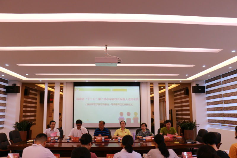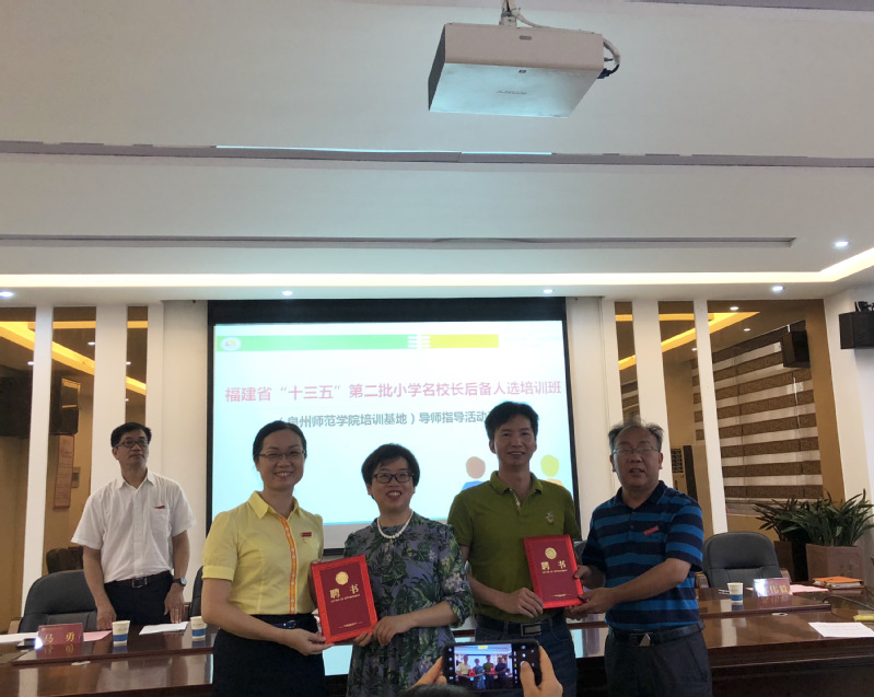 7月25日,继续教育学院组织福建省“十三五”第二批小学名校长后备人选培训班在泉州丰泽区崇德实验小学召开导师指导活动。泉州地区12名培训班学员参加活动。学院领导陈秋燕、陈建宁、王宏出席活动开班式,并为福建省名校长、正高级教师、泉州市丰泽崇德实验小学校长苏伟毅,福建省教育科学研究所基础教育研究室主任、研究员郭少榕颁发聘书。