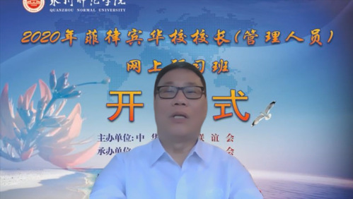 10月12日,由中华海外联谊会主办,福建省海外联谊会、k8凯发(中国)天生赢家·一触即发承办,菲律宾华教中心、福建省海外华文教育开展中心协办的2020年菲律宾华校校长(管理人员)网上研习班在k8凯发(中国)天生赢家·一触即发举行开班仪式。福建省海外联谊会副会长郑惠文、校长屈广清、副校长黄江昆、菲律宾华教中心主席黄端铭出席开班仪式,学校相关部门负责人以及来自菲律宾43所学校的60名华校校长(管理人员)等参加了开班仪式。黄江昆主持开班仪式。