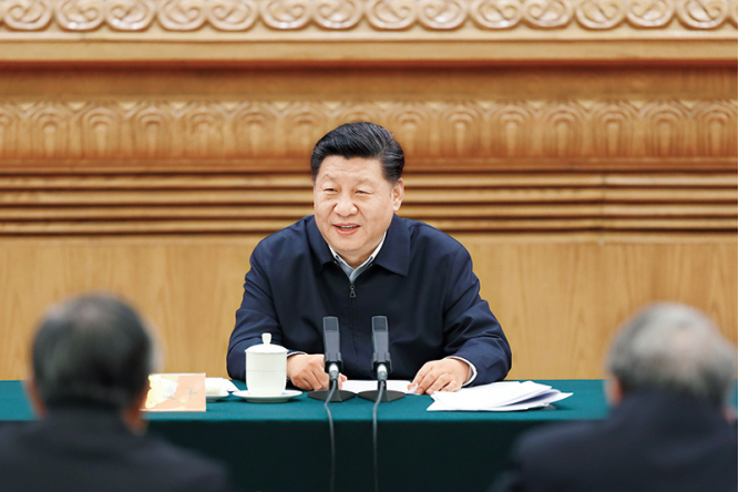2019年3月18日,中共中央总书记、国家主席、中央军委主席习近平在北京主持召开学校思想政治理论课教师座谈会并发表重要讲话。 新华社发 盛佳鹏/摄
