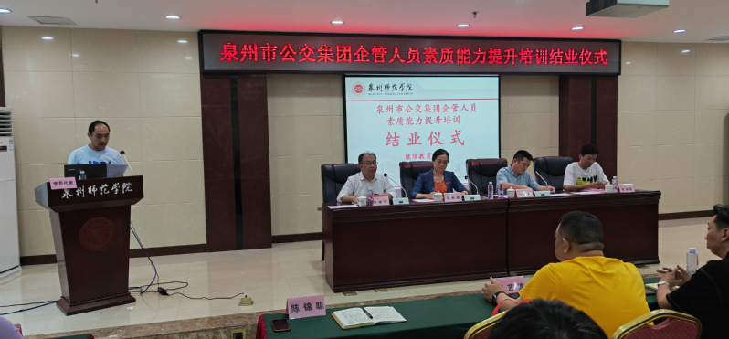 5月18日下午,2023年泉州市公交集团企管人员素质能力提升培训班在完成所有课程教学之后,举行了结业仪式。泉州市公交集团党委副书记、总经理陈志刚,人力资源部经理陈䶮毅和继续教育处、继续教育学院领导出席,公交集团全体参训学员以及继续教育学院培训中心老师参加结业仪式。继续教育学院党总支书记陈建宁主持仪式。