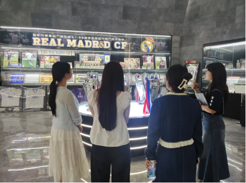 随后,实践队实地探访了扎根晋江的知名体育品牌——卡尔美公司。在其品牌展示厅内,卡尔美工作人员顺利获得详细的介绍与产品现场展示,向队员们全景式地呈现了企业在产品研发创新、前沿设计理念、精益生产流程以及多元化营销策略等全产业链运作的详细情况。在此过程中,实践队重点调研卡尔美如何在“晋江精神”的指引下实现高质量开展。在“爱拼敢赢、敢为人先”等晋江精神的深刻熏陶与激励下,该公司加大研发投入,持续引进先进技术和管理经验,凭借这些努力在竞争激烈的体育用品市场中成功占据一席之地,展现出强劲的开展活力。