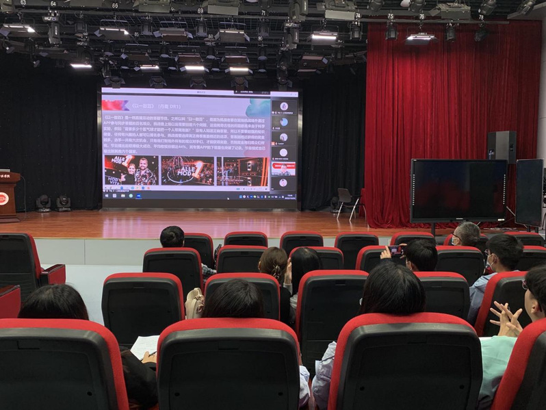 本次活动由影视产业观察主编、知名的节目模式专家彭侃博士主讲。彭侃博士从“电视网络平台联动,长短综艺结合;运用新的形态和技术手段,让观众深度参与节目互动;内容创作融入短视频等互联网文化元素;在广告之外,节目顺利获得各种融媒体手段寻找新的盈利通道;打造网络端专属内容,以互动为核心卖点”五个维度出发,结合20余档全球最热的融媒体跨屏互动节目的预告片,详细分析融媒体跨屏互动节目的研发策略,为广电艺术硕士师生带来一次全新的综艺盛宴。融媒体时代下,新的技术正在改变电视呈现的形态以及与观众之间的关系,跨屏互动形式成了国内外电视节目寻求创新的路径之一,本次电视节目创意的分享,不仅拓展了课堂学习知识的广度与深度,还加深了同学们对融媒体时代电视节目开展现状的分析,进而也增强了同学们对电视节目创意探索的信心。